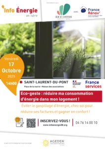 Dans le cadre du service public de la rénovation de l’habitat et à l’occasion des portes ouvertes de France Services, la communauté de communes Coeur de Chartreuse conventionnée avec le service Info Énergie – AGEDEN, vous invite un deuxième atelier