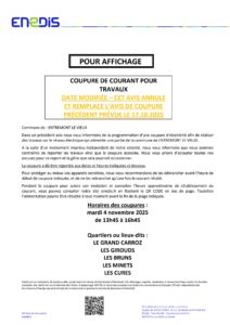 Rappel d’une coupure d’électricité programmée le 04/11/2025